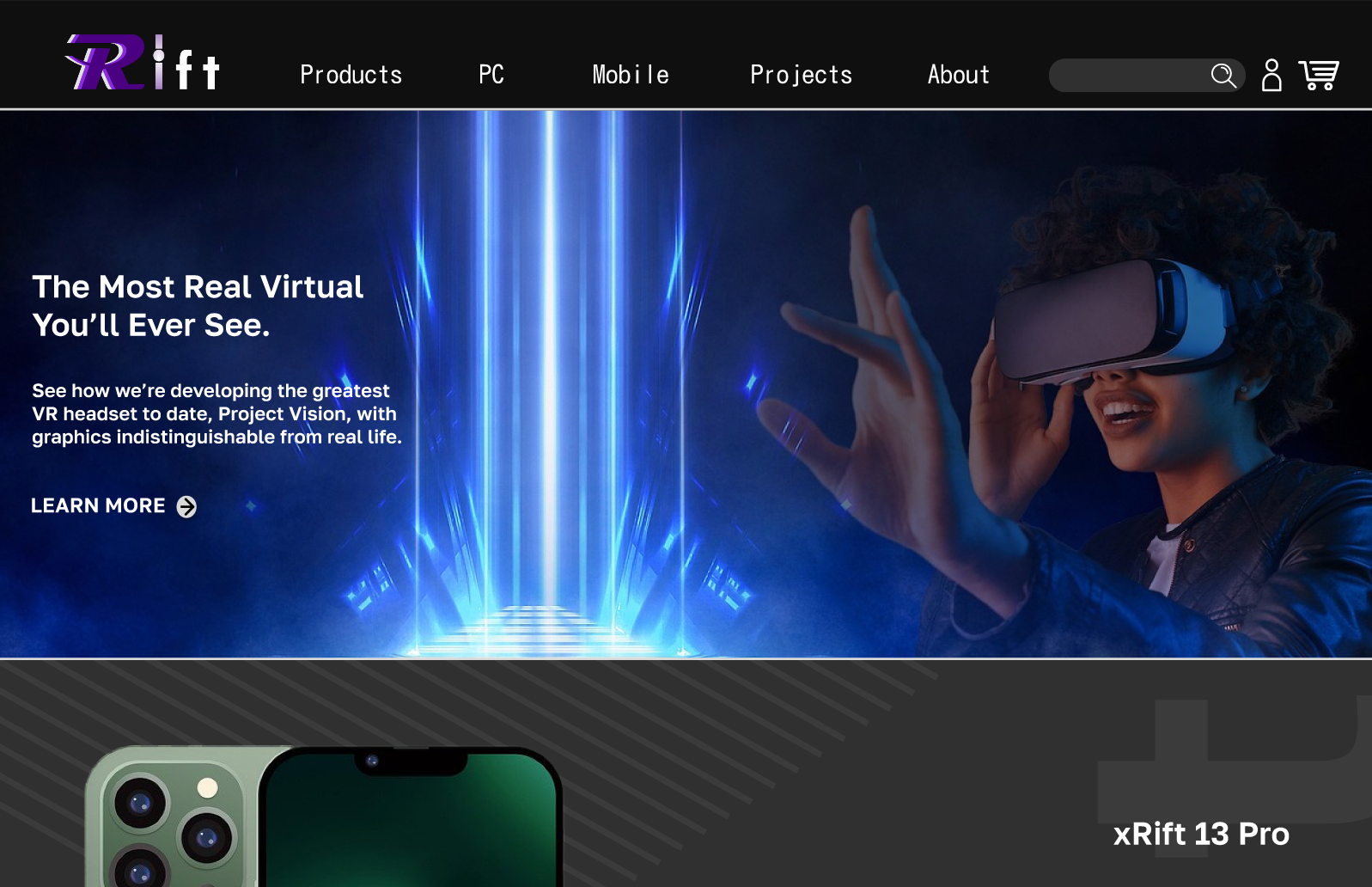 Visual Identity and Figma-based website concept with edited stock imagery for Rift, a technology company.