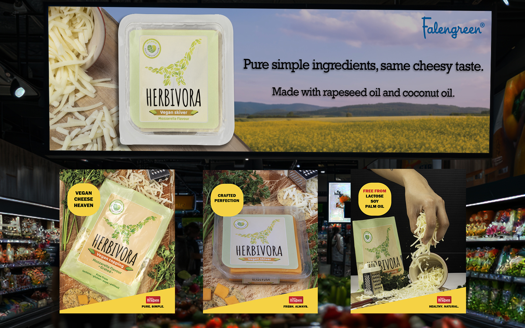 In-store banner and social media posts for Falengreen, a Denmark-based food wholesale corporation.