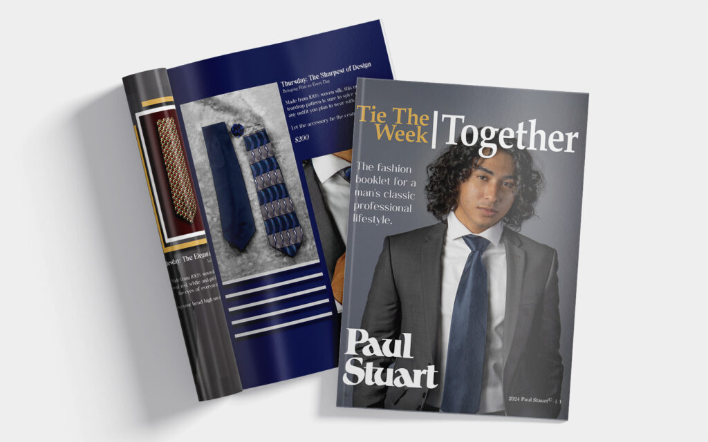 Tie The Week Together is a fashion booklet from Paul Stuart promoting a professional lifestyle through their ties.